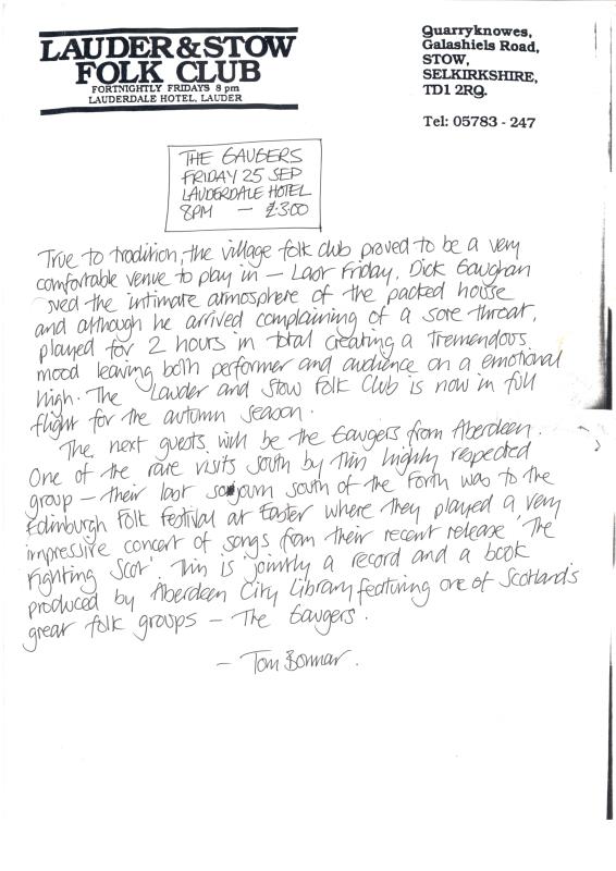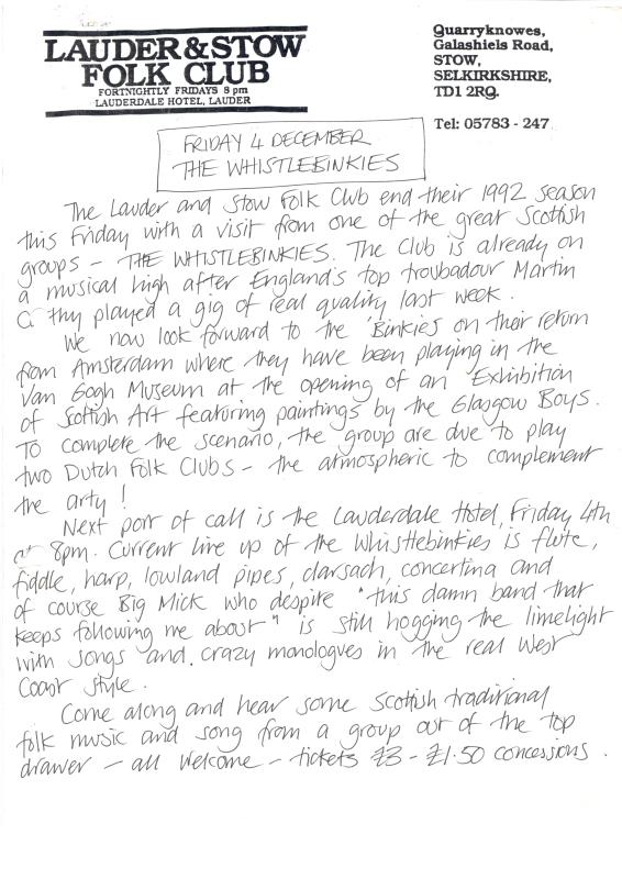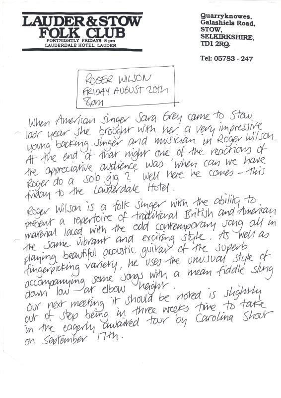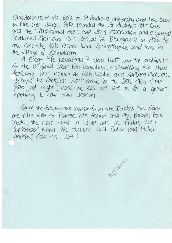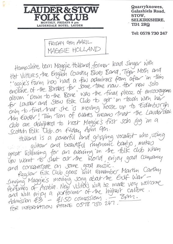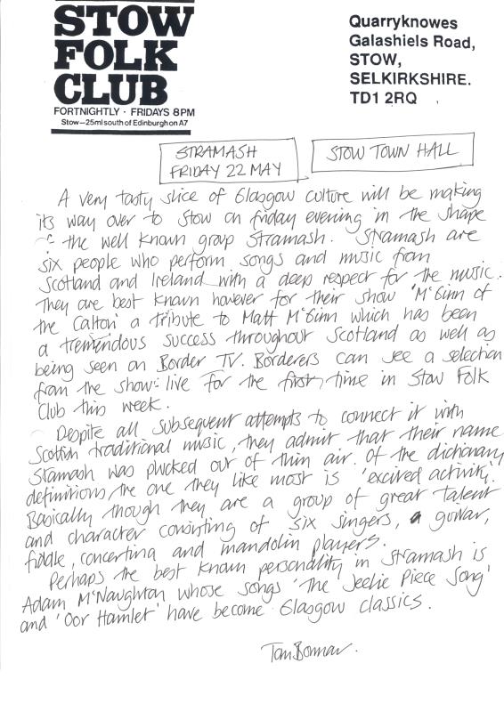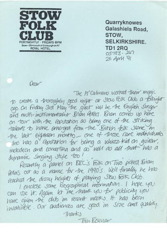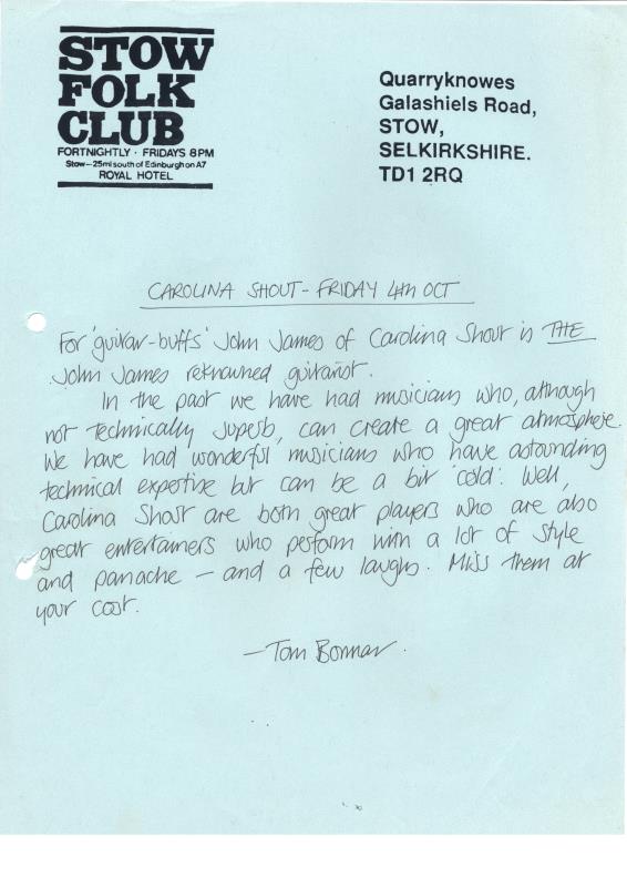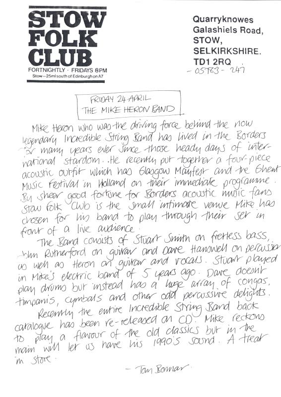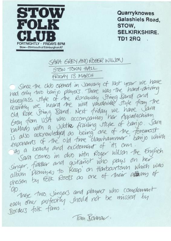 Stow Folk Club Fliers & Articles